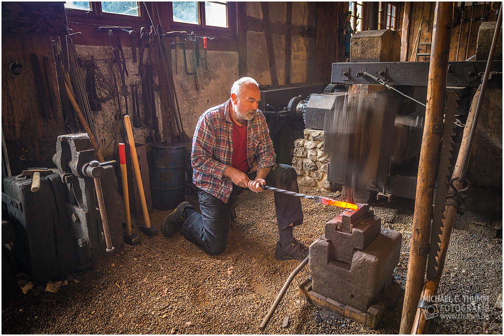 Frank Trommer gezeigt, wie einst mit den gewaltigen Hämmern gearbeitet wurde.