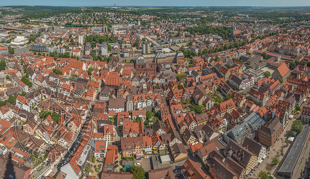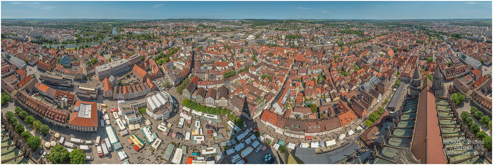 Die Original-Aufnahme zeigt den kompletten 360°-Rundumblick auf die Stadt Ulm und Umgebung.