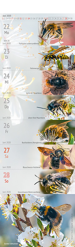 GuterHirte e.V. Ulm (Zentrum für Kinder-, Jugend- und Familienhilfe) hat für nächstes Jahr diesen tollen Kunstkalender herausgebracht. Ich durfte bei der Präsentation in Ulm mit vielen anderen Künstlern dabei sein. Ich freue mich sehr. Auf dem Blatt habe ich viele fotografierte Insekten, u.a. Bienen, Hummeln und Wespen platziert, es gibt sogar eine Postkarte zum Abtrennen. Es ist der Artenname mit abgebildet und liefert eine kleine Bestimmungshilfe.